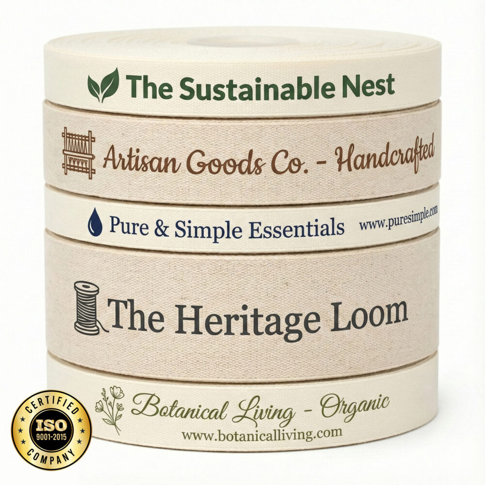 Whether you choose dark black ink for a bold contrast on cream cotton or subtle brown tones for a vintage look, our printed cotton ribbon techniques ensure sharp logos and legible text that won't fade easily.